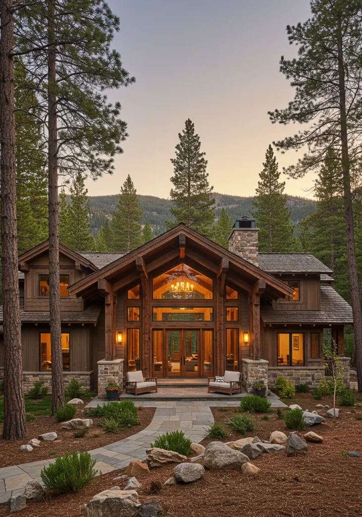 I find this design so captivating because it combines elegance with nature in the most inviting way. The mix of stone and wood offers a grounded, earthy feel, while the clean lines and modern touches bring a sense of sophistication. It’s the kind of house that feels timeless yet contemporary, blending effortlessly with its natural surroundings. I can picture myself enjoying the cozy warmth from inside, all while feeling connected to the beauty of the outdoors. It’s luxury, but in a very down-to-earth way.