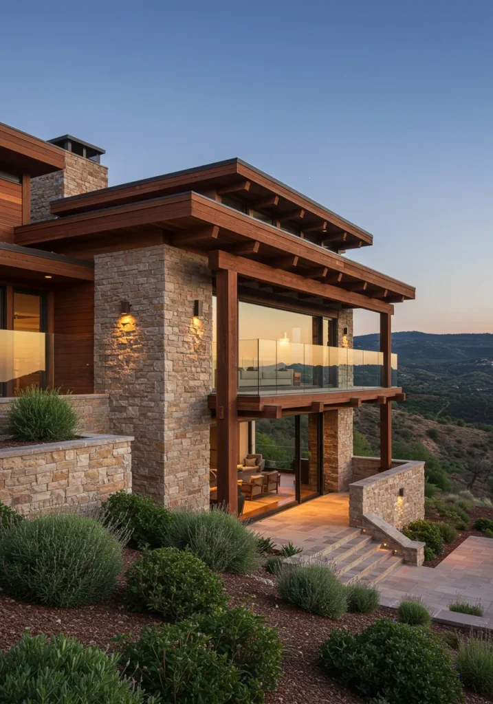 What I absolutely love about this design is how it balances natural elements with luxury. The stone exterior and rich wood accents make it feel grounded and timeless, yet the expansive glass windows invite you to enjoy the beauty of nature from within. It feels like the perfect mix of being cozy and welcoming while still feeling like a high-end retreat. I can easily picture relaxing evenings here, sipping wine on the balcony with that gorgeous view!