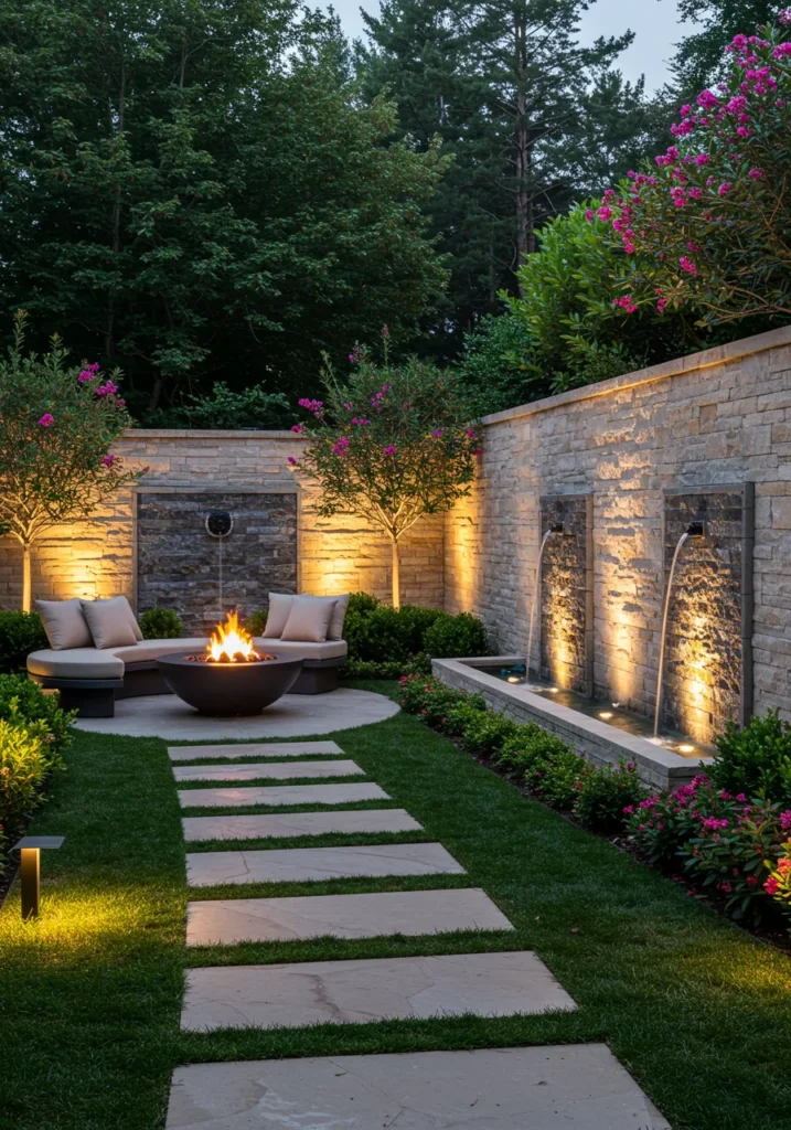 Cozy Fire Pit and Water Feature Retreat