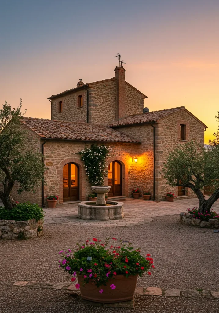 I find this villa to be absolutely captivating! The combination of stonework with perfectly manicured greenery and a decorative fountain makes this home feel like a work of art. What really draws me in is the balance of old-world charm with a sense of stateliness. It’s a perfect example of how luxury doesn’t have to be over-the-top—it can be achieved with thoughtful details and timeless elegance. The glow from the warm interior lights just adds that welcoming touch, inviting you to experience the beauty and warmth inside. Truly a dream home!