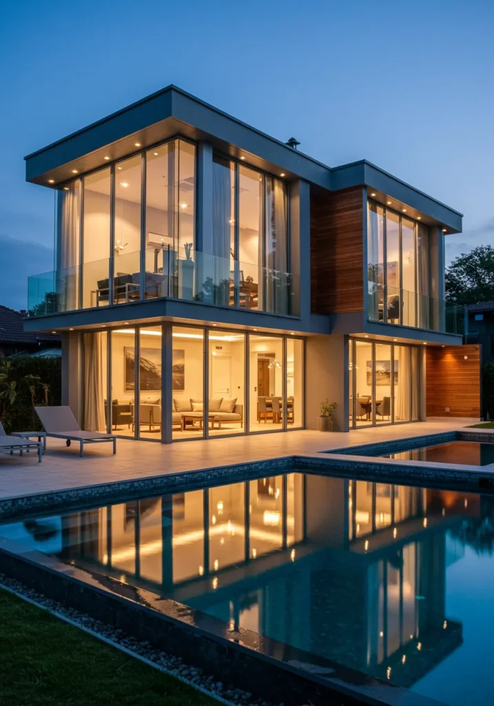 Contemporary Glass Villa with an Elegant Poolside