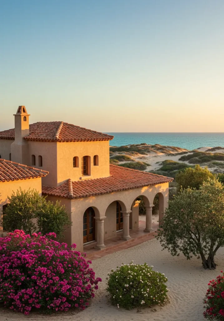 Mediterranean-Inspired Beach Villa with Floral Garden