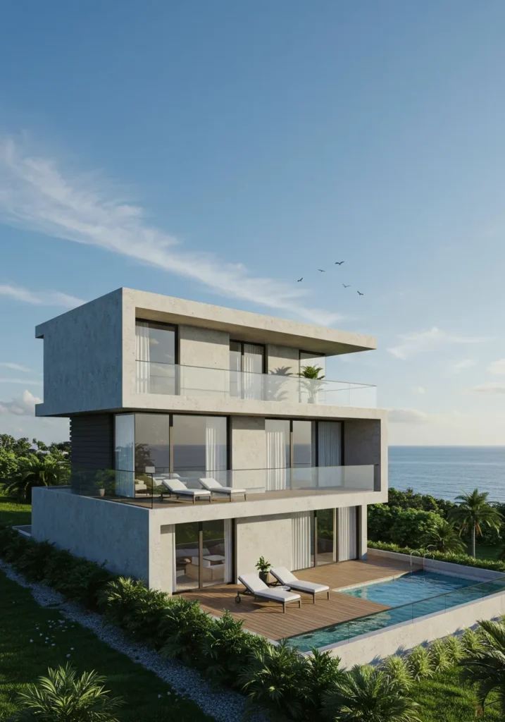 Modern Concrete Beach Villa with Stunning Ocean Views