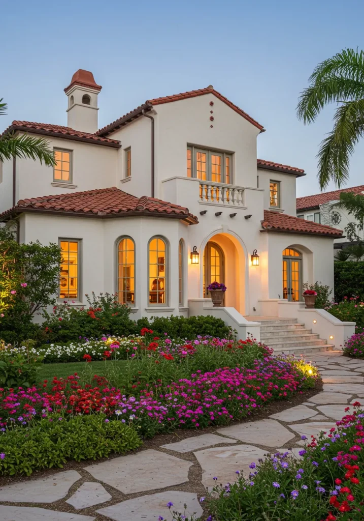 Spanish-Inspired Beach Villa with Vibrant Landscaping